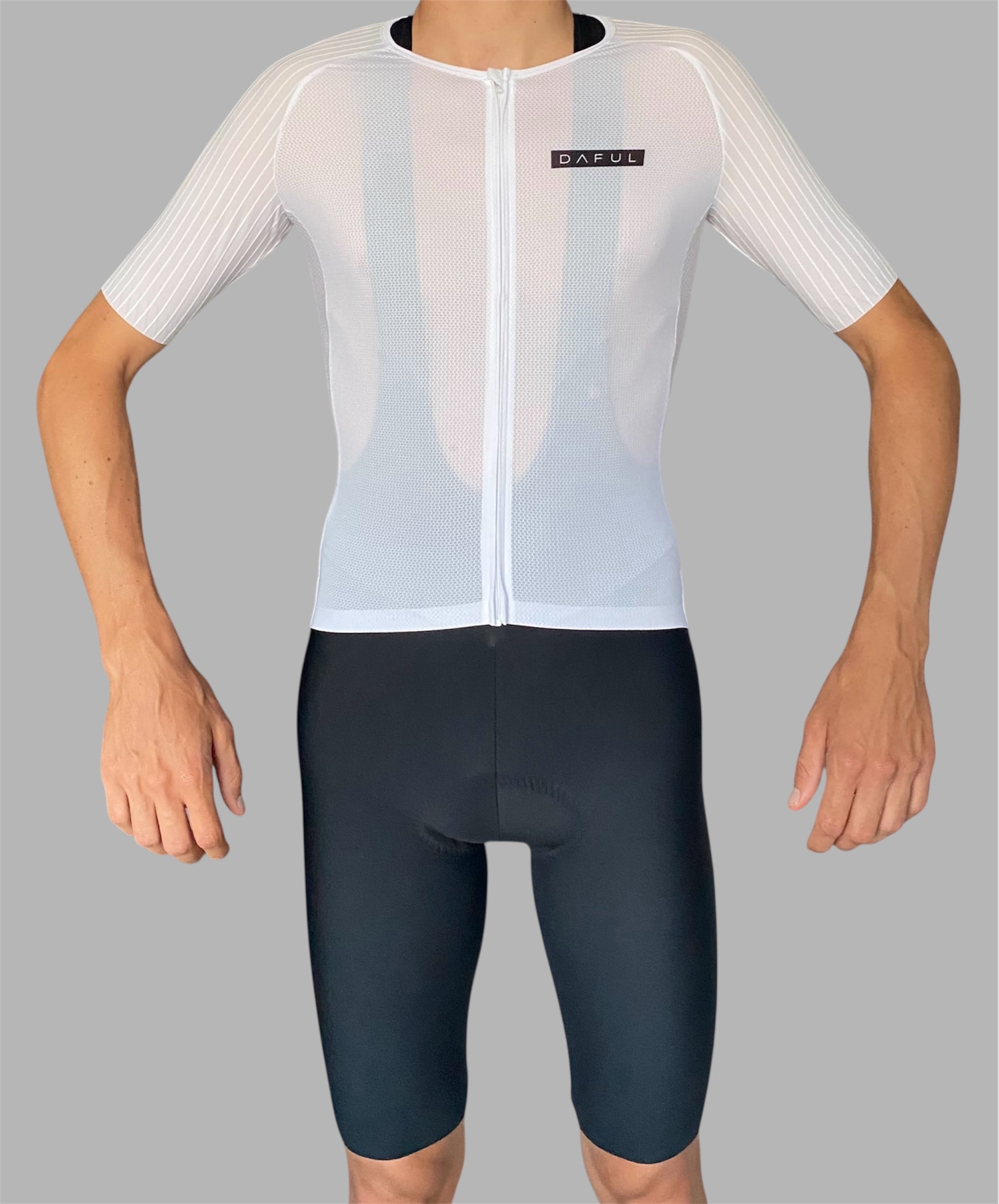 Featuring aero fabric on the sleeves and shoulders, it effectively reduces drag for better air penetration, especially on the bike section. The laser-cut sleeves and shorts offer a clean cut and a second-skin fit, while Grippers+ technology at the ends ensures optimal support without compression, even during prolonged efforts.